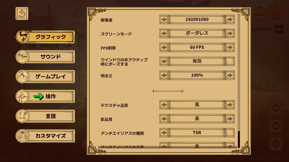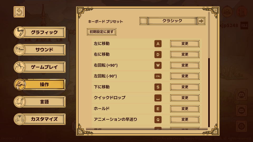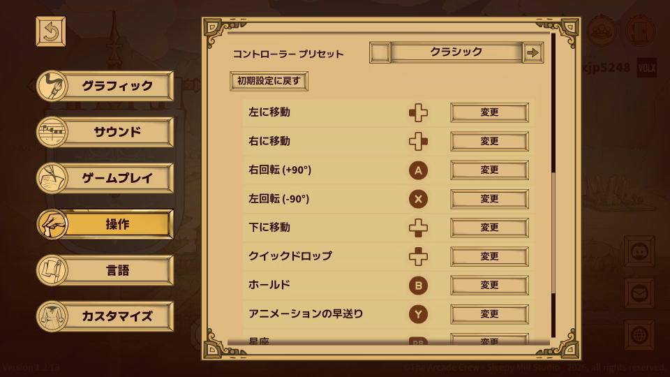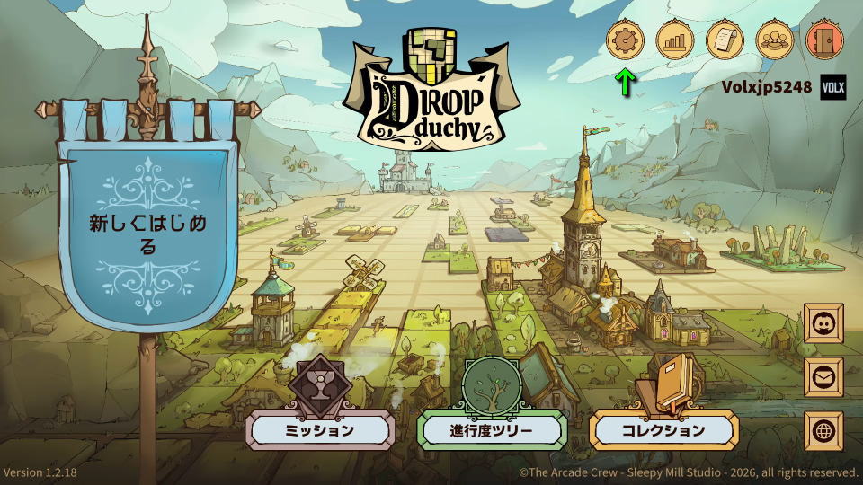 Drop Duchyの操作を確認するには、タイトルメニューの右上にある「設定」に進みます。