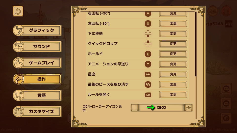 コントローラーアイコンを変更するには、操作の一番下の「コントローラーアイコン表示」を変更します。