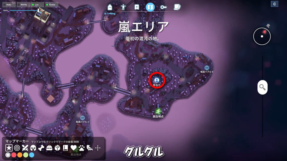 | グルグル | グルグルを倒した ・嵐エリアの東の地下施設に出現する |