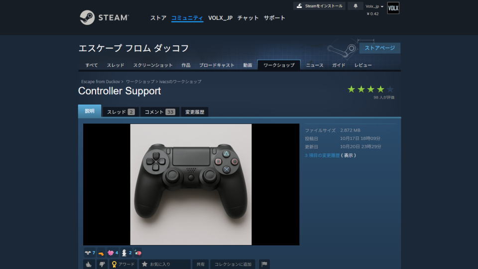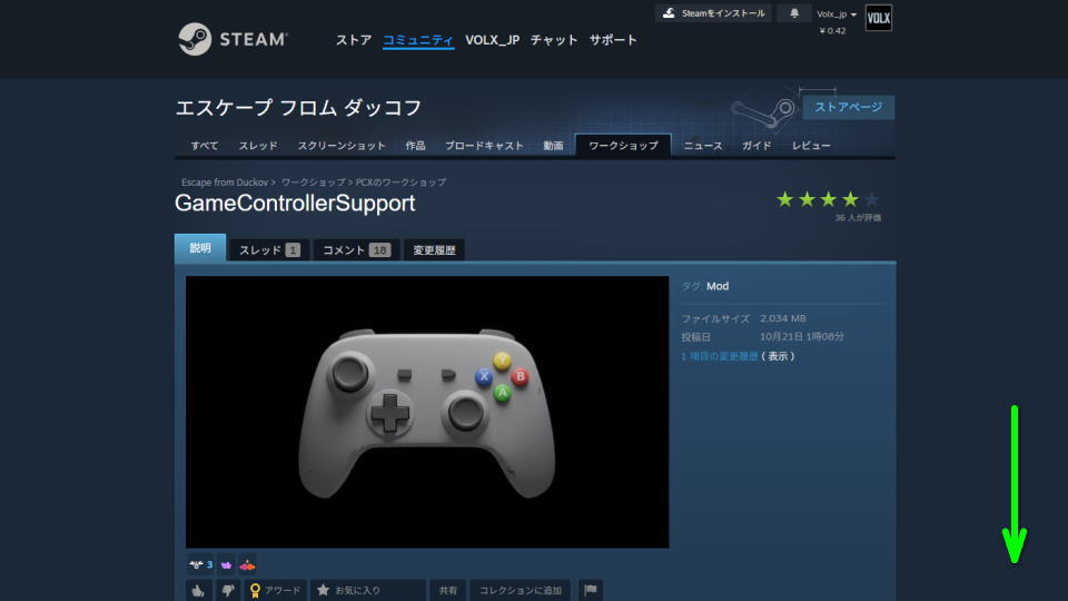 MOD「GameControllerSupport」をサブスクライブしたら、エスケープ フロム ダッコフを起動します。