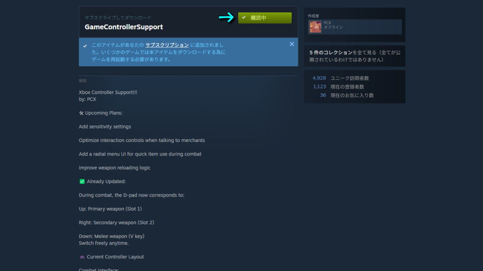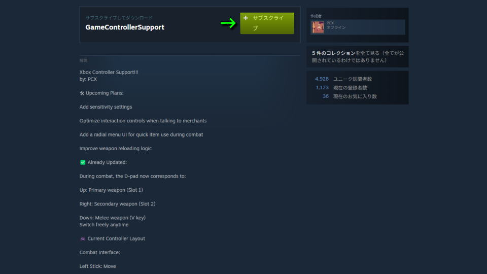 今回の機能と類似するコントローラーMODとして「Controller Support」があります。
