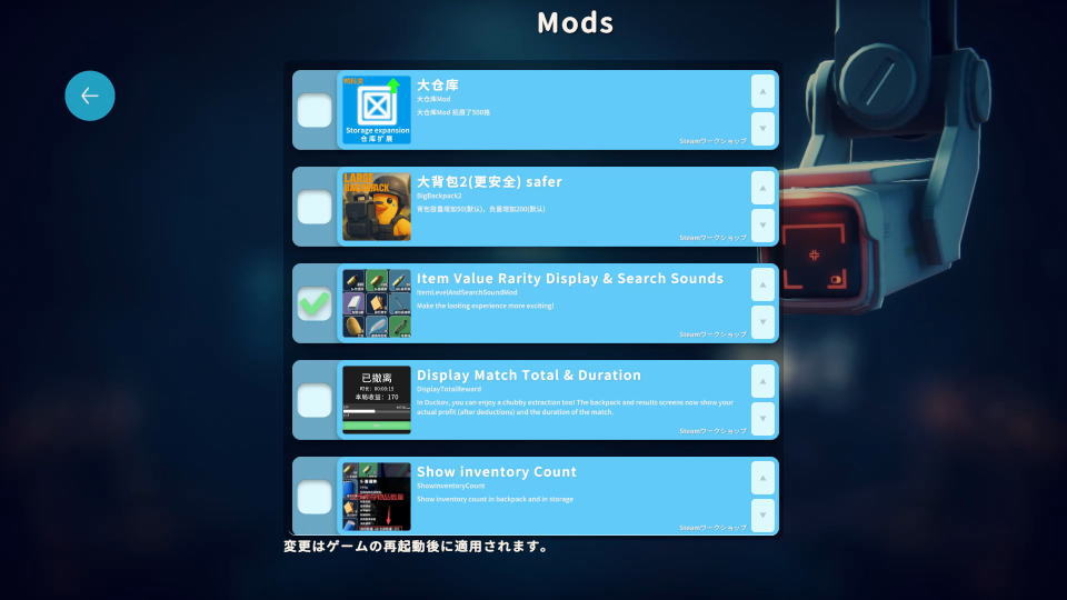 ダッコフのアイテムをレア度(レアリティ)で色分けするには、MOD「Item Value Rarity Display & Search Sounds」を利用します。
