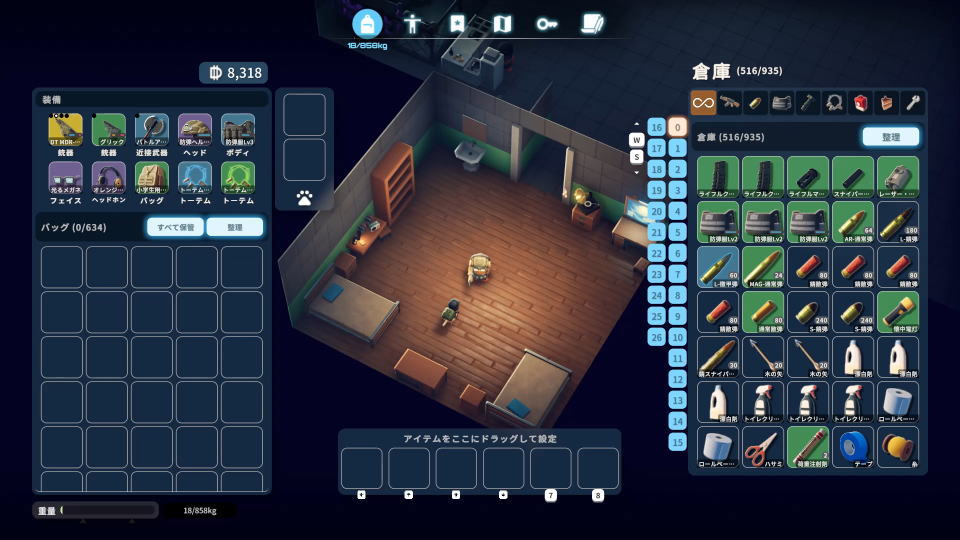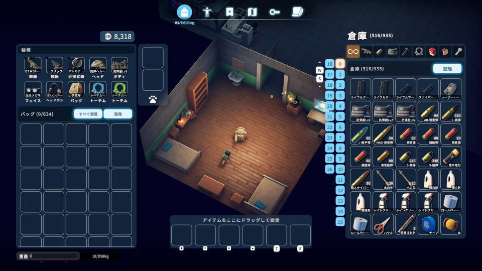多数の危険を孕むダッコフの世界を慎重に探索して、物資をかき集めていくエスケープ フロム ダッコフ。