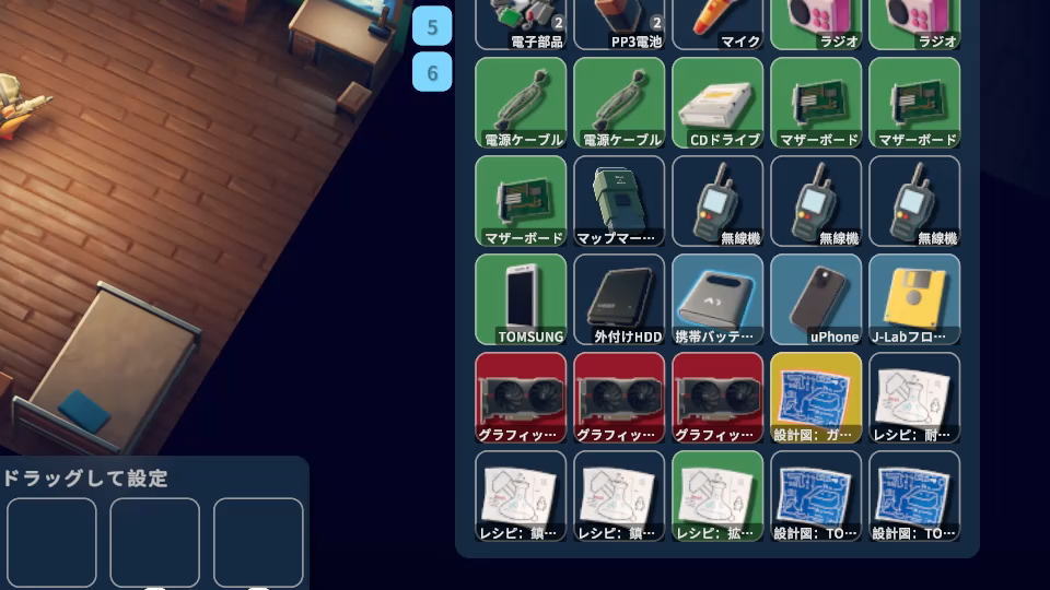 序盤で高価な「グラフィックカード」の場合は、レア度が高いため赤色になります。