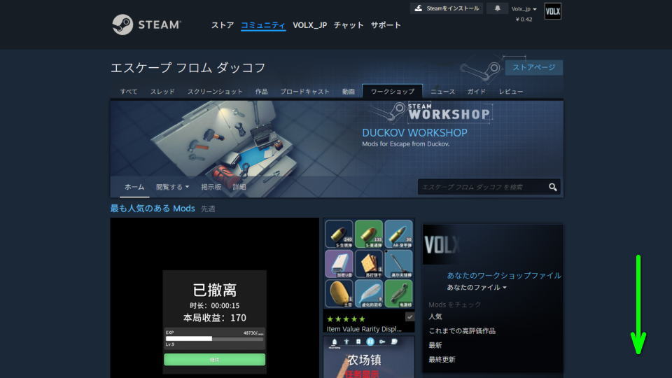 エスケープ フロム ダッコフのMODは、Steam内の「ワークショップ」で確認することができます。