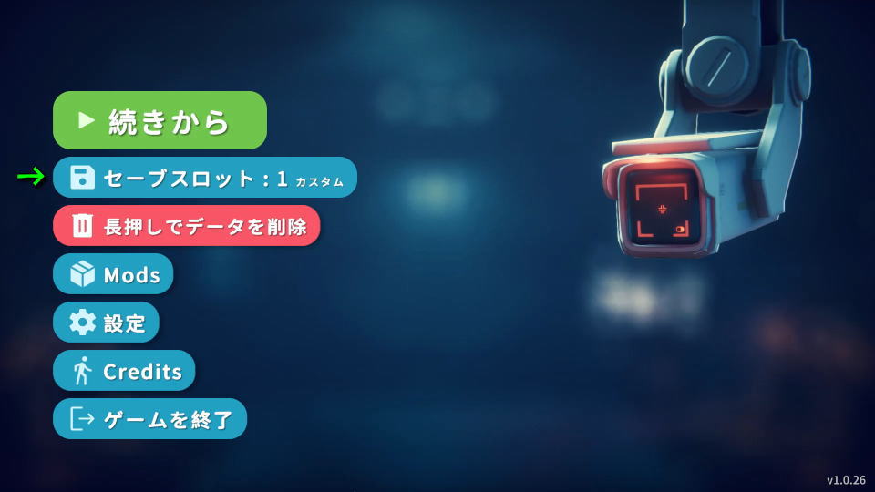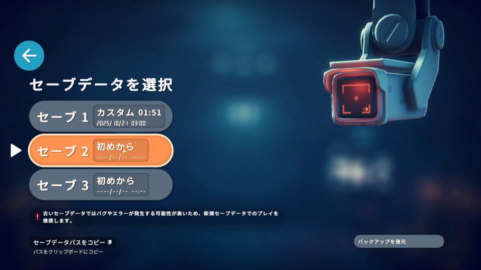ダッコフを初めからプレイするには、タイトルメニューで「セーブスロット」を選択します。