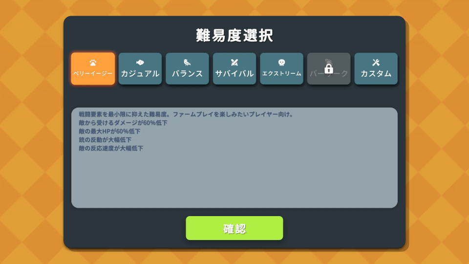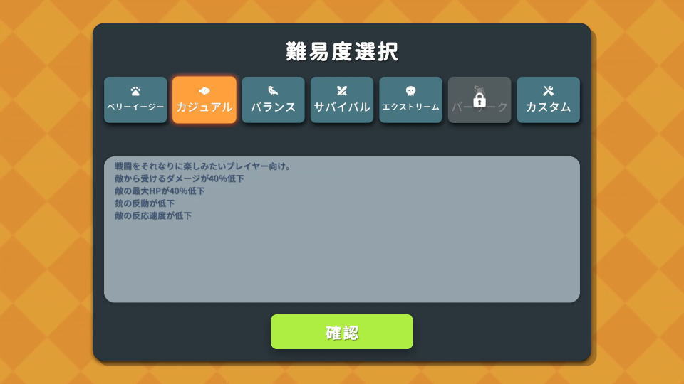 カスタムは難易度の中でも特殊な設定となっており、一度設定すると他の難易度に変更できません。