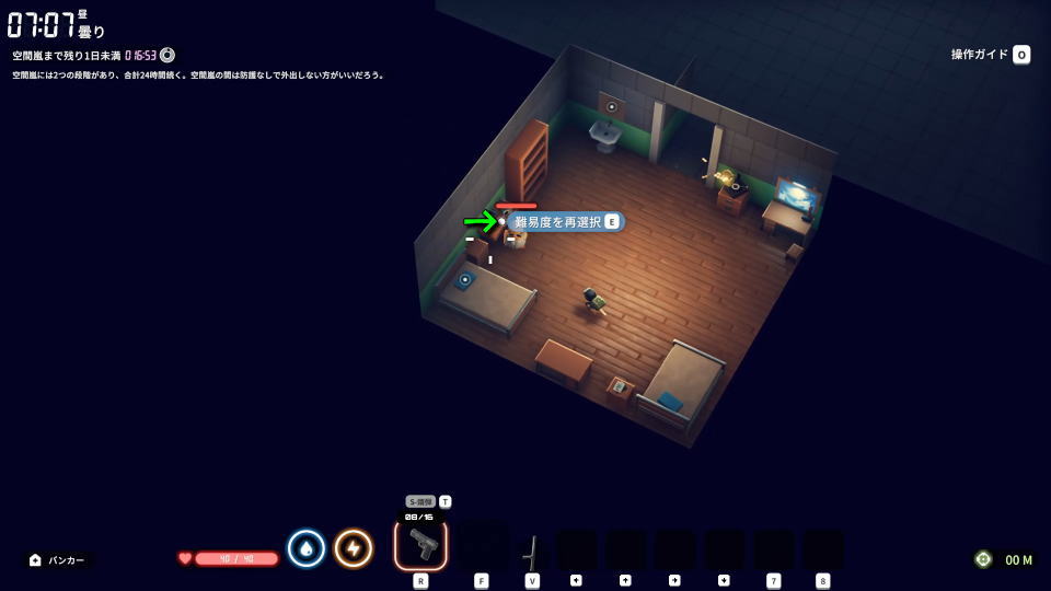 難易度の変更は「カスタム以外」で行え、いつでも拠点のベッドの近くの机から行えます。