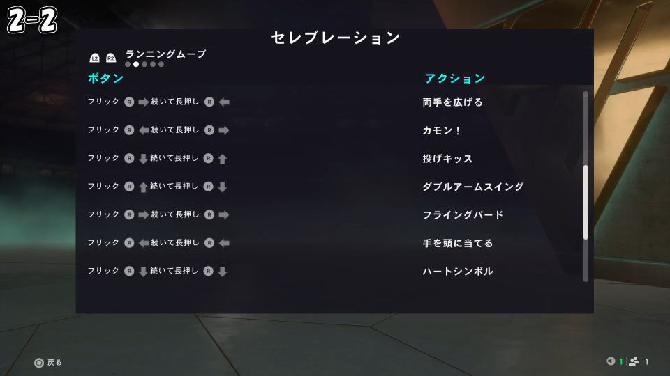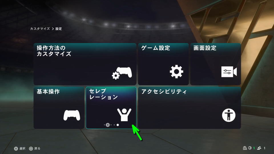 カスタマイズに移動したら「設定」から「スキルムーブ」にカーソルを合わせて、Rスティックを操作したのちに「セレブレーション」を選択します。