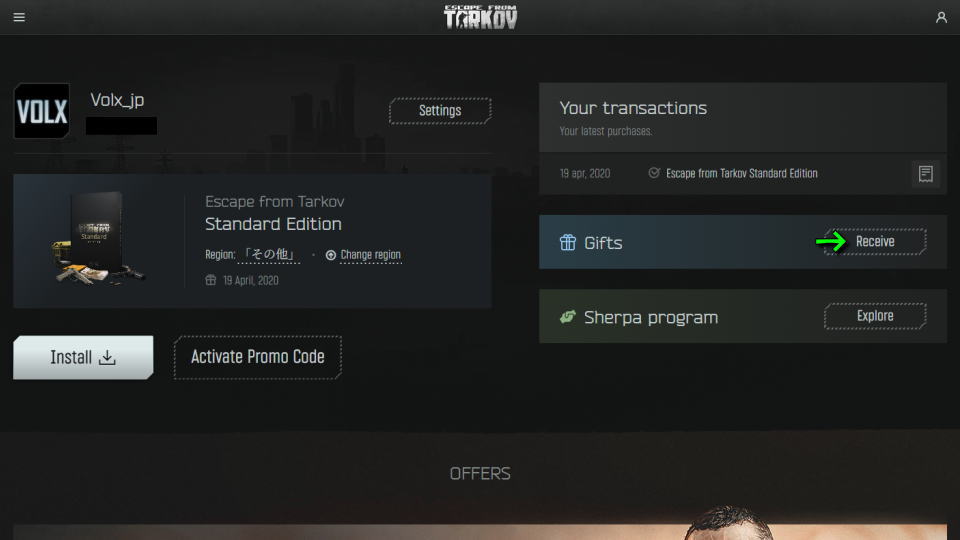 指定のページからプロモコードを入力することで、ゲーム内コンテンツが入手可能なEscape from Tarkov。
