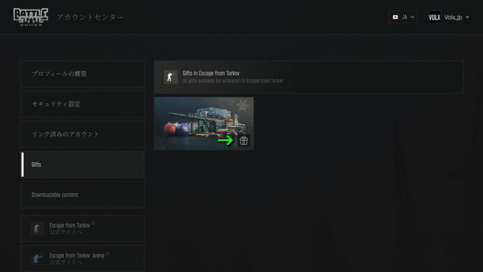 補足としてこの画面には「Gifts - Battlestate Games」から直接アクセスできます。