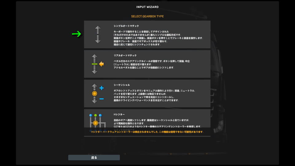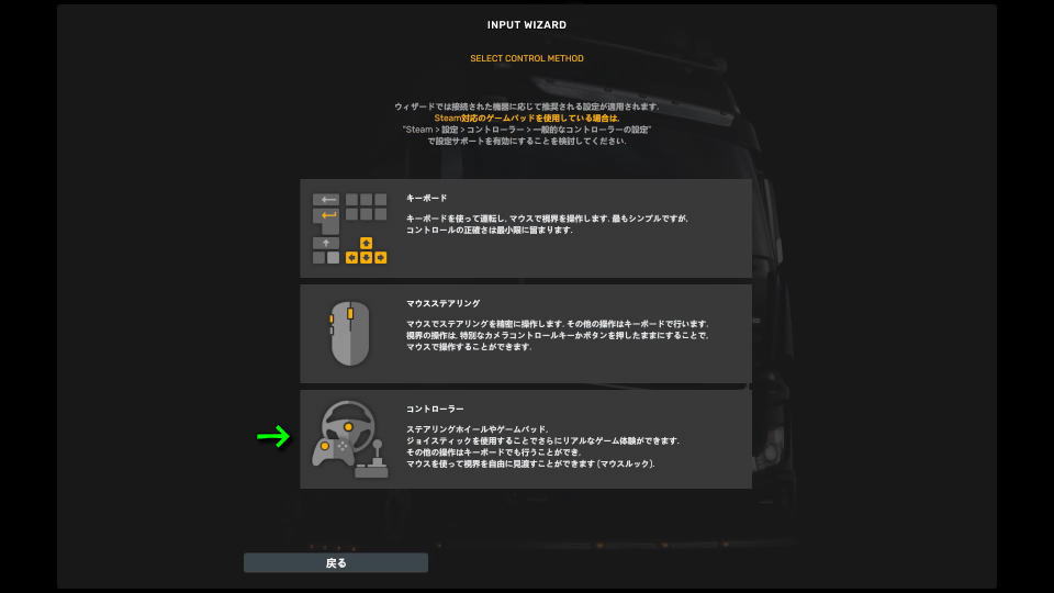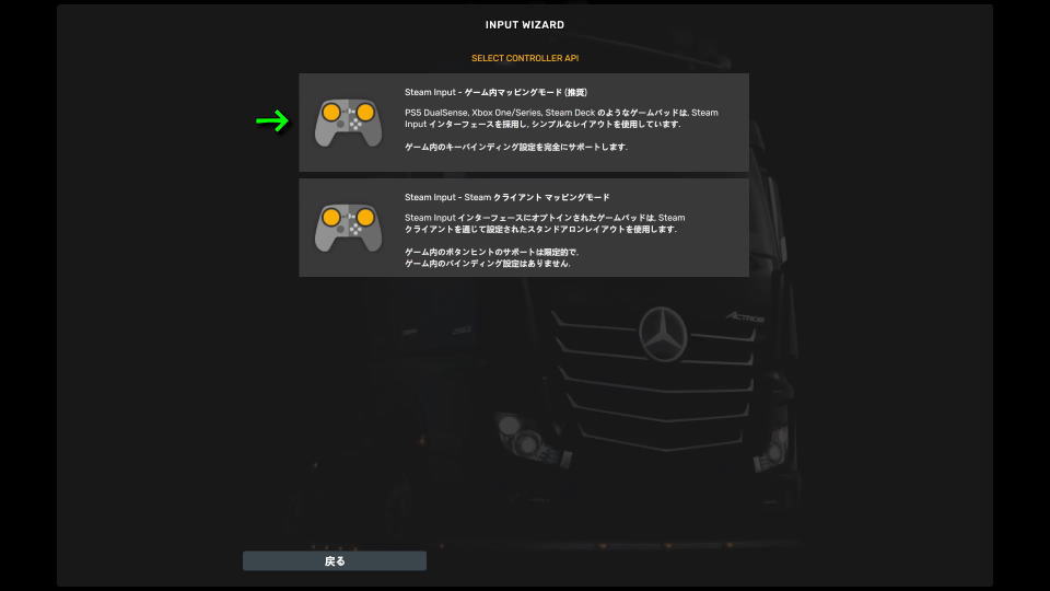 Steam Input - ゲーム内マッピングモード(推奨)を選択したら、運転の難易度を選択します。