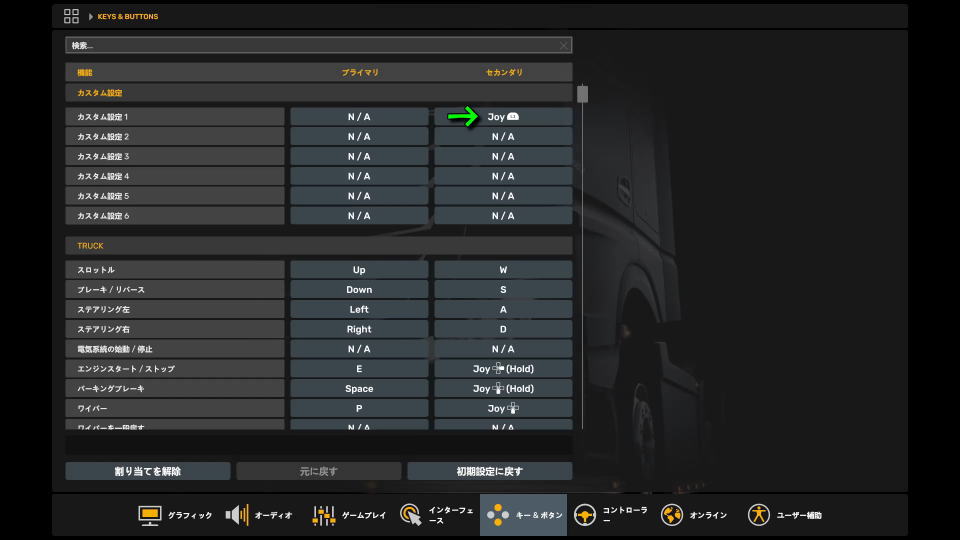 ETS2のキーボード設定
