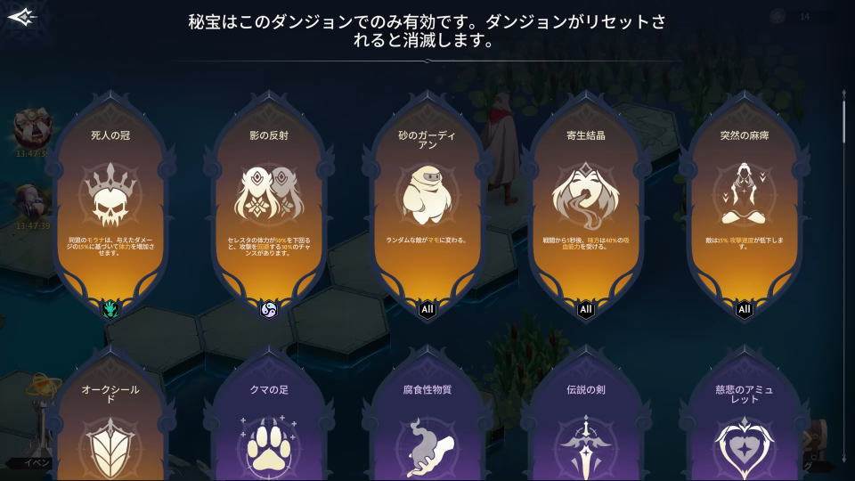 ここで重要な点は、ダンジョンで勝利すると報酬のほかに「バフ選択」が可能となる点です。