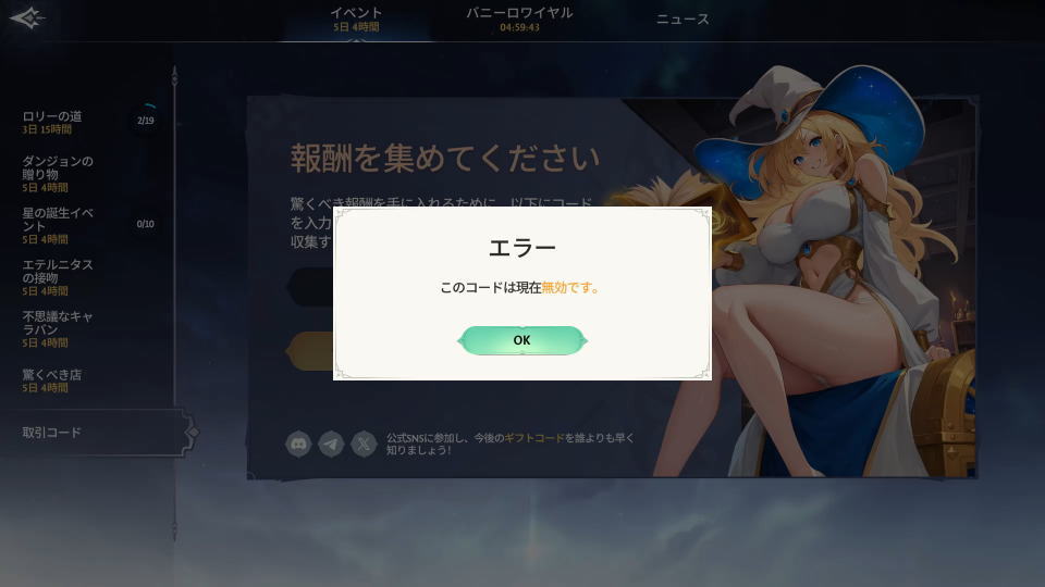 取引コードが有効な場合は、このように入力したコードに対応した報酬が獲得できます。