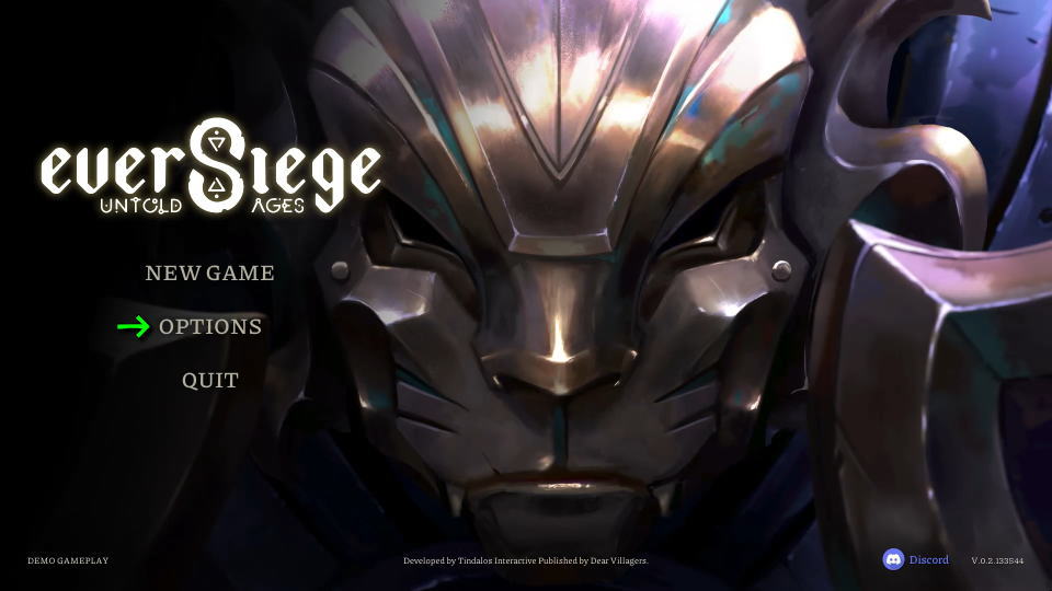 EverSiege Untold Agesの言語を変更するには、タイトルメニューから「OPTIONS」に進みます。