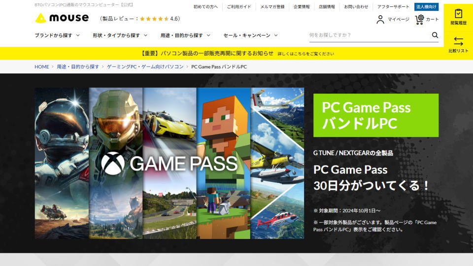 PC Game Pass バンドルPC|マウスコンピューター【公式】