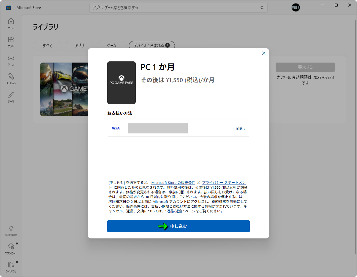 私は対象期間中に、マウスコンピューターの「PC Game PassバンドルPC」を手配したことが原因でした。
