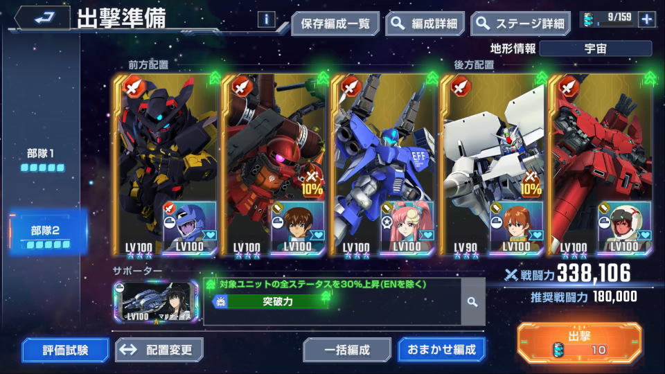 1周目に比べて条件が緩いため、部隊編成の自由度はかなり高いです。