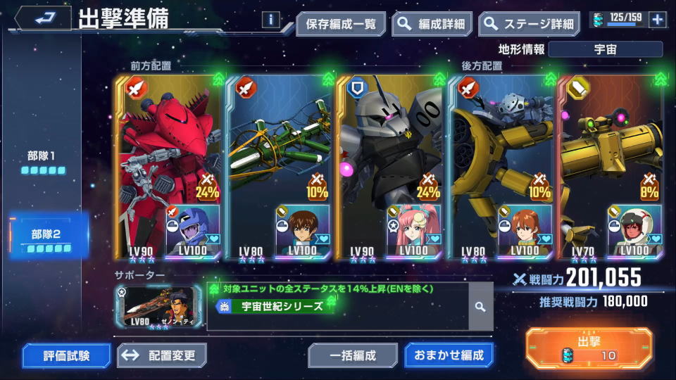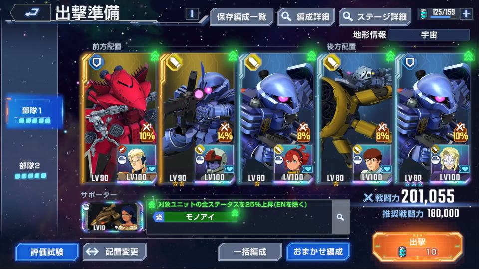 いずれのユニットもレベルを最大化しただけで、武装レベルはすべて1のままで問題ありませんでした。