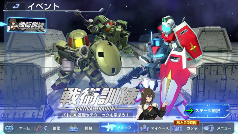 イベントに移動したら、左メニューの「戦術訓練 TACTICAL TRAINING」で「ステージ選択」を選びます。
