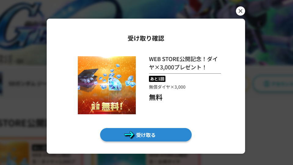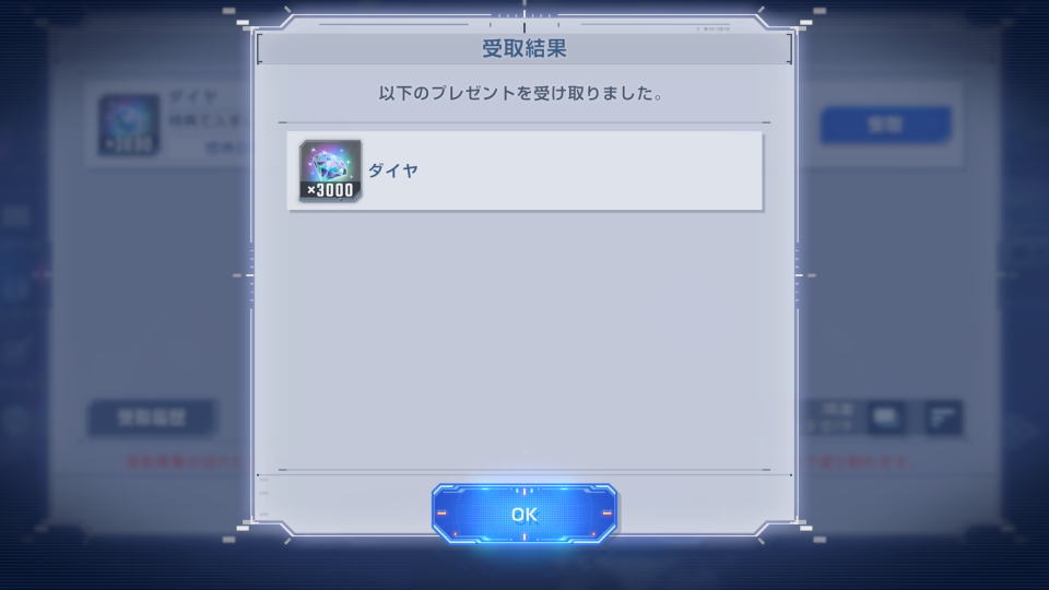 プレゼントを開いたら、目的の「ダイヤ×3,000」を受け取っておきましょう。