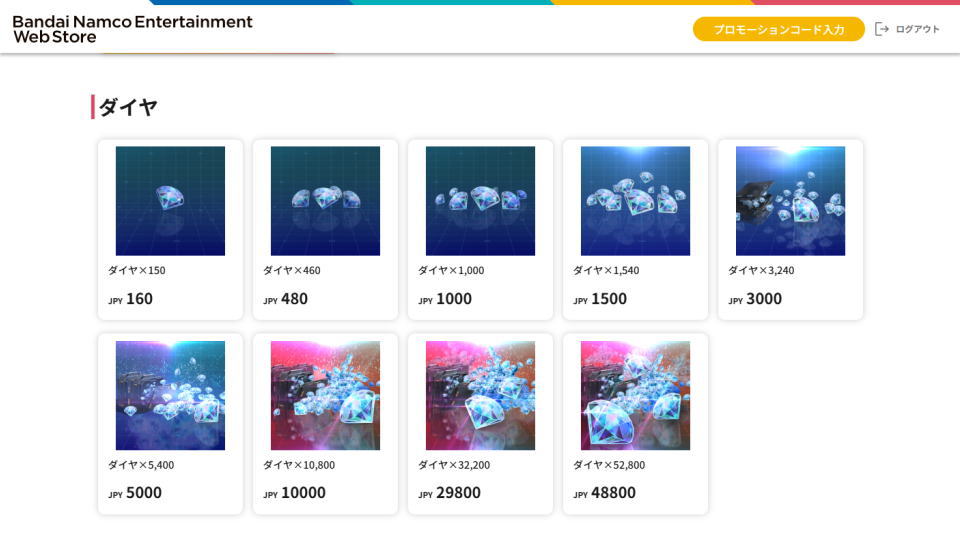 ゲーム内ショップのダイヤ価格
