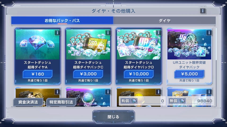 ゲーム内ショップが得になる条件は、数量限定の「お得なパック・パス」を購入する時です。