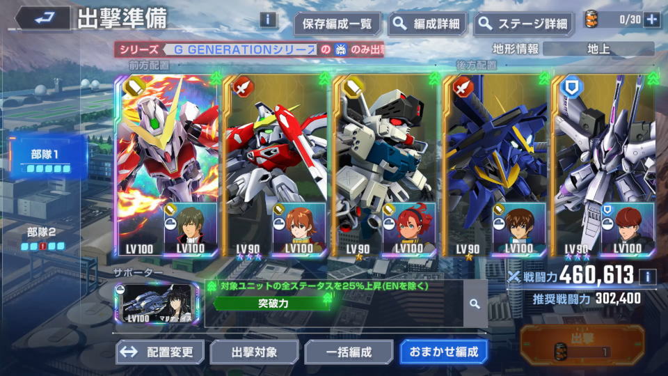 2種のブーストを条件にすると、ガシャが必要なG GENERATIONシリーズは編成幅が狭いです。