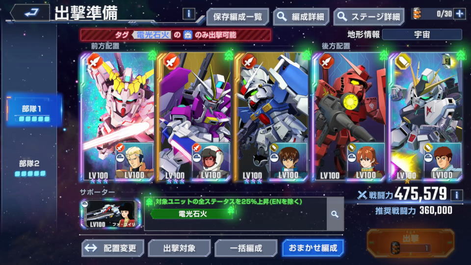 出撃画面では「出撃制限を受けたシリーズ」しか表示されないため「電光石火」または「突破力」を持つユニットを優先的に選択して、シリーズとタグの両方のバフを受けられる部隊編成を目指しましょう。