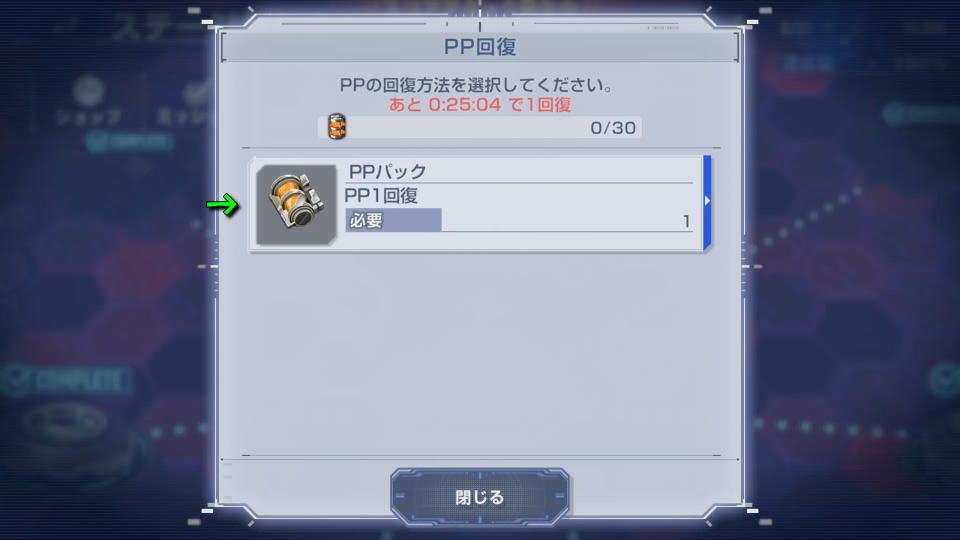 PPの上限は30となっており、理論上は0から完全に放置していても30時間は溢れません。