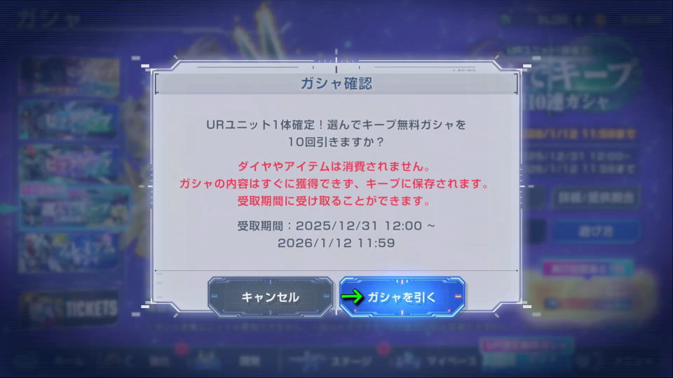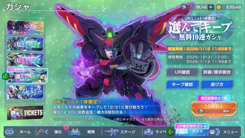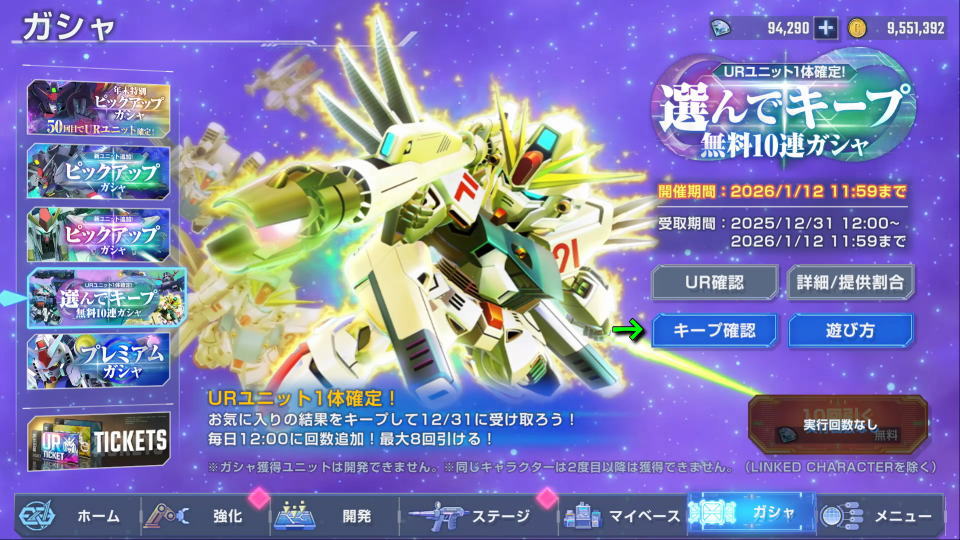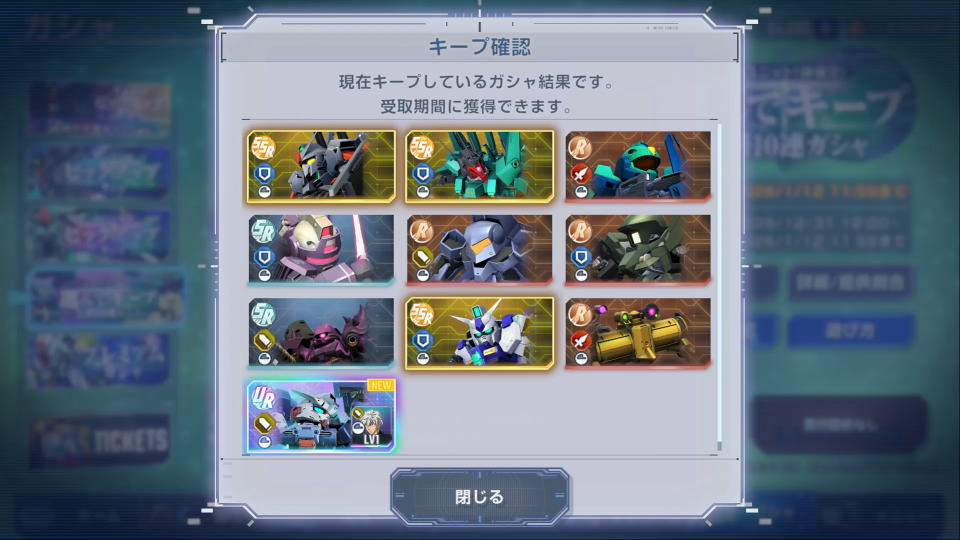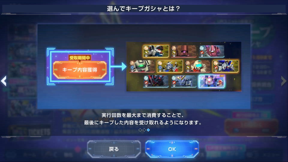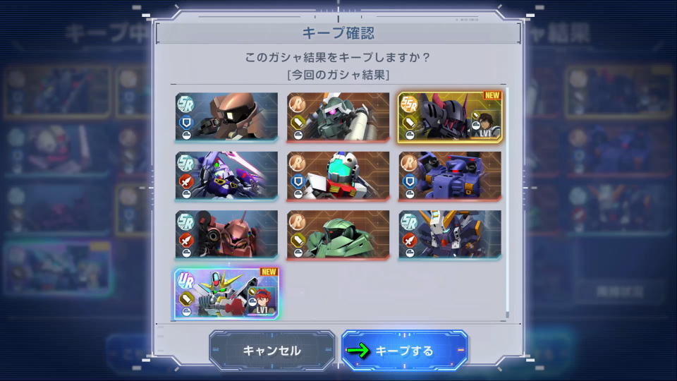 SDガンダム ジージェネレーション エターナルで期間限定で開催されている、無料10連選んでキープガシャ。