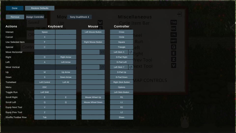 Grimshireの「コントローラー設定」です。