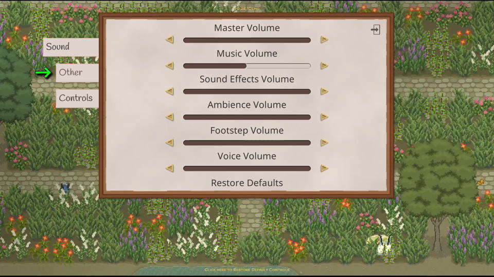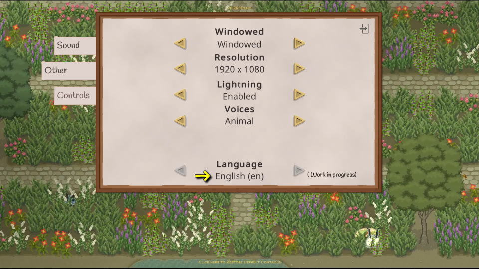 Grimshireの操作を確認するには、前述した「Settings」から「Controls」に進みます。