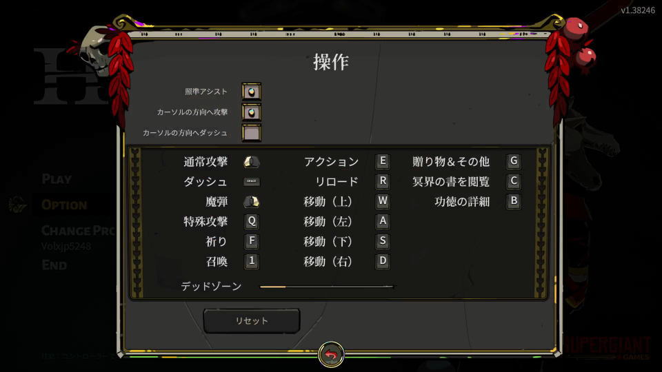 今回の記事ではこの「Hades」の操作に関わるキーボードや、コントローラーの設定について解説します。