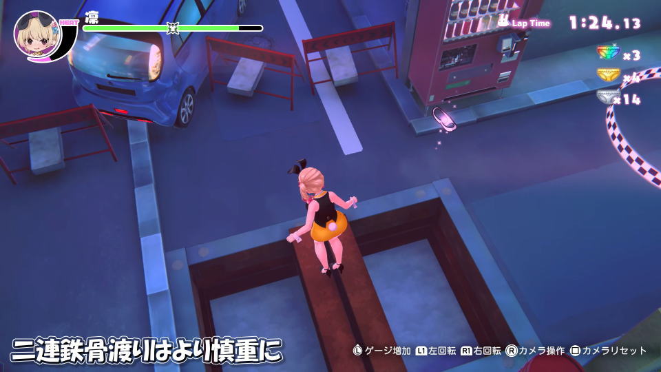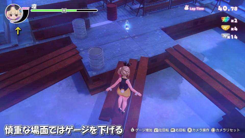 そのため落ちてしまうくらいなら、へべれけゲージを下げて正確な操作と移動に努めます。