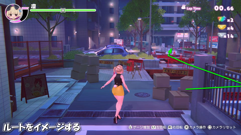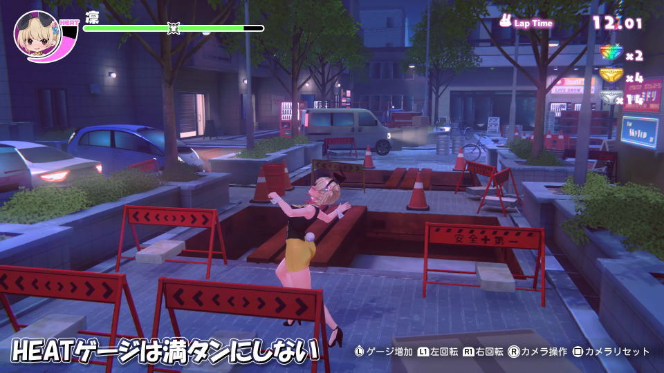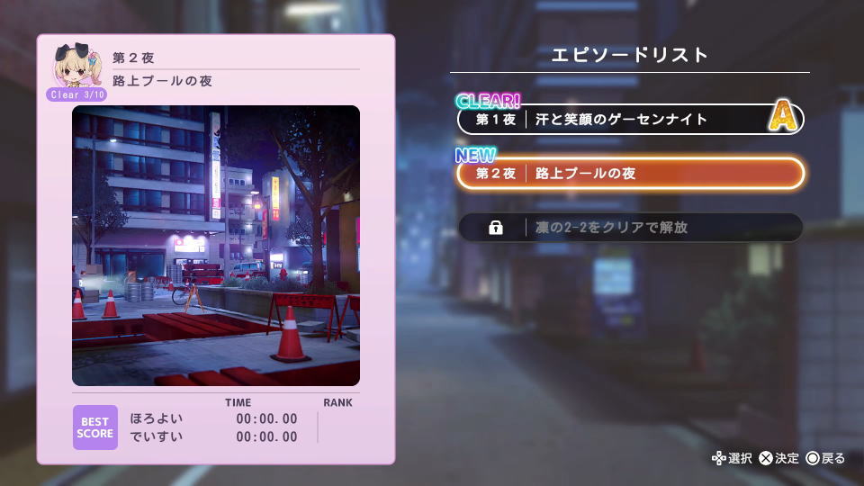 序盤で何度もリトライしたステージは、凛のエピソード第2夜「路上プールの夜」です。