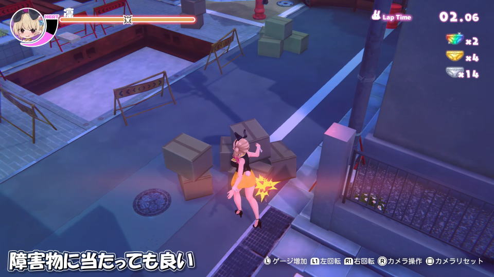 障害物に当たるとキャストの体力が減少し、残体力に応じて衣装が半壊したりゲームオーバーになります。