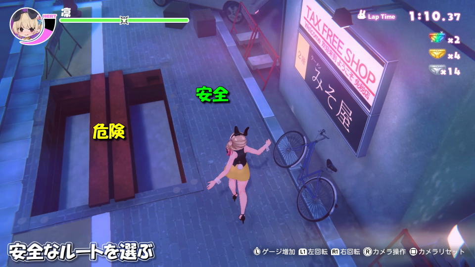 ままならない足取りのキャストを無事に自宅まで送り届ける、アクションゲームのへべれけ ばにーがーでん。