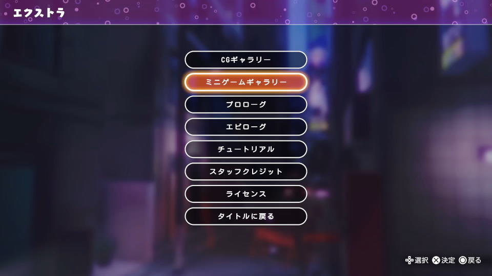 ゲームを起動したら、タイトルメニューの「エキストラ」から「ミニゲームギャラリー」に移動します。
