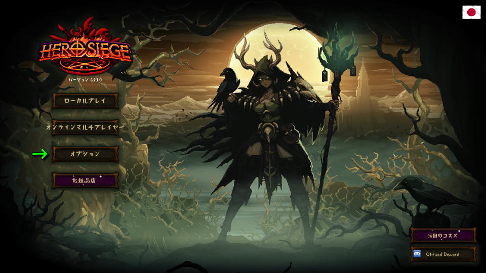 Hero Siegeの操作を確認するには、日本語化済みのタイトルメニューから「オプション」に進みます。