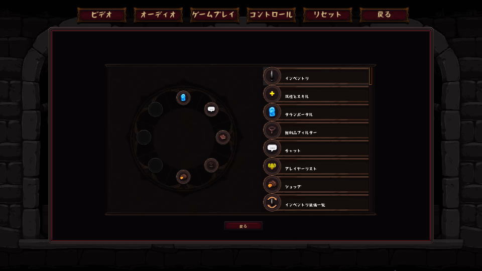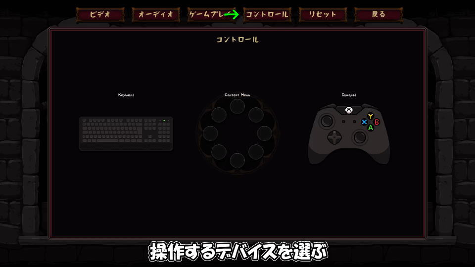 コントロールを開いたら、操作するデバイスに応じた操作方法を指定します。