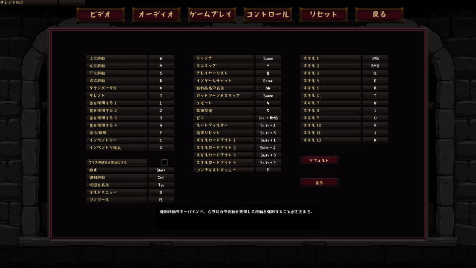 | カットシーンをスキップ | Space |