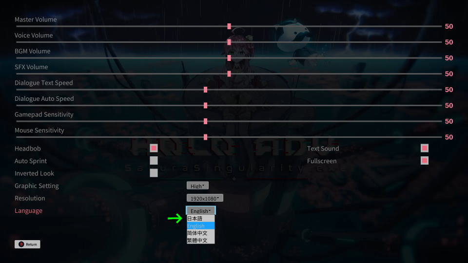 Holo ADV: SakuraSingularity.exeを日本語化するには、タイトルメニューから「OPTIONS」に進みます。