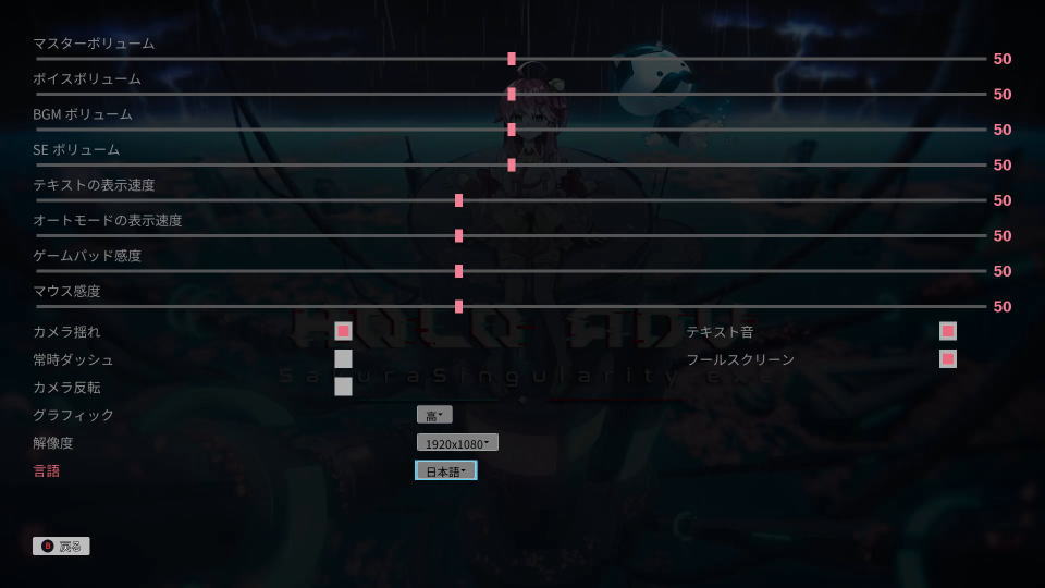 Holo ADV: SakuraSingularity.exeのキーボードとコントローラー設定