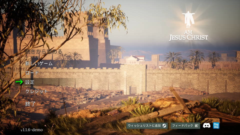I Am Jesus Christの操作を確認するには、タイトルメニューから「設定」に進みます。