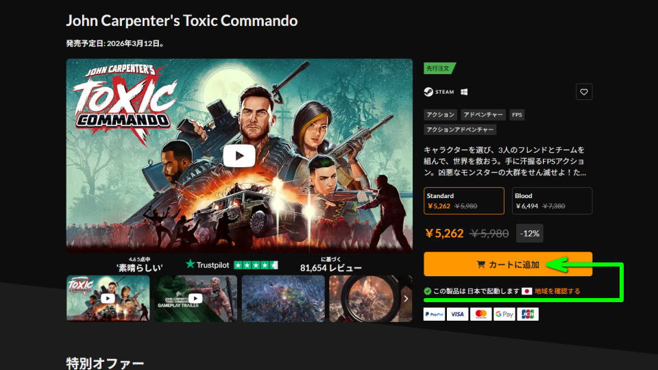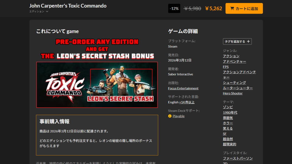 または直接「John Carpenter's Toxic Commando」の商品ページにアクセスします。