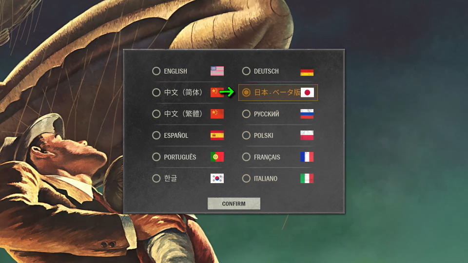 KARDSを日本語化するには、初回起動時の言語選択で「日本 - ベータ版」を選択します。
