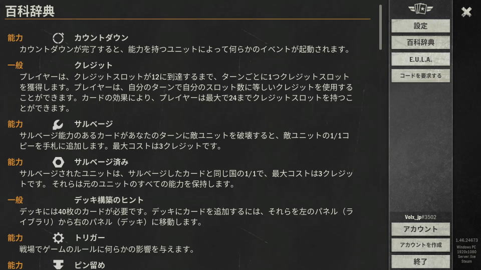今回の記事ではこの「KARDS」を日本語化する方法と、ゲームの解説「百科辞典」をまとめて解説します。