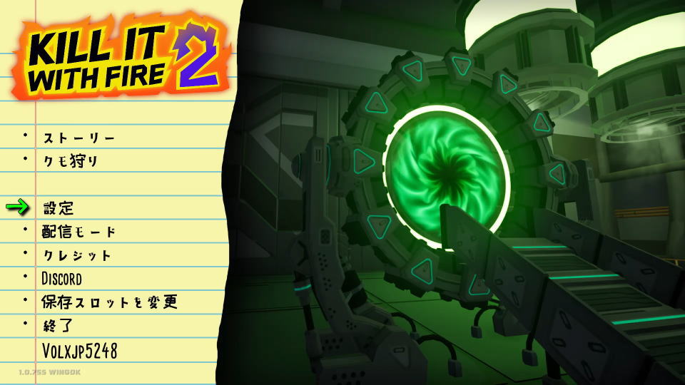 Kill It With Fire 2の操作を確認するには、タイトルメニューから「設定」に進みます。